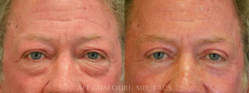 This gentleman underwent upper eyelid surgery and lower deep plane blepharoplasty with fat injection to the lower eyelids and mid-face for a comprehensive natural rejuvenation of this area of the face.